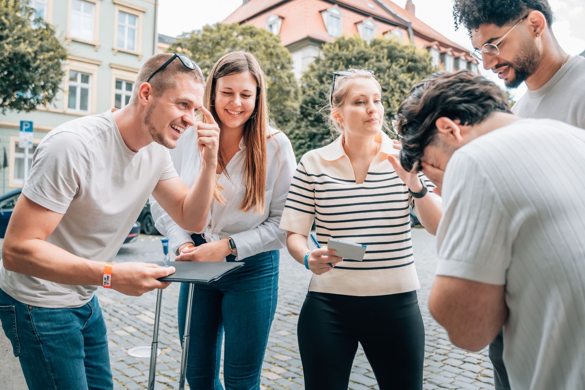 - Ihr startet Euer Team Game Outdoor Abenteuer zentral in der City.